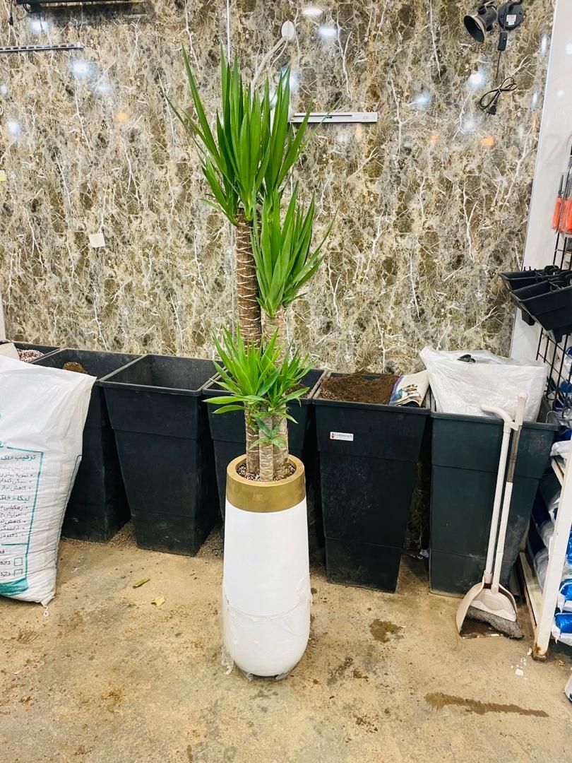 گلدان هدیه لوکس فایبر گلاس رنگ سفید با یوکا سه شاخه بزرگ (180- 210سانتی)