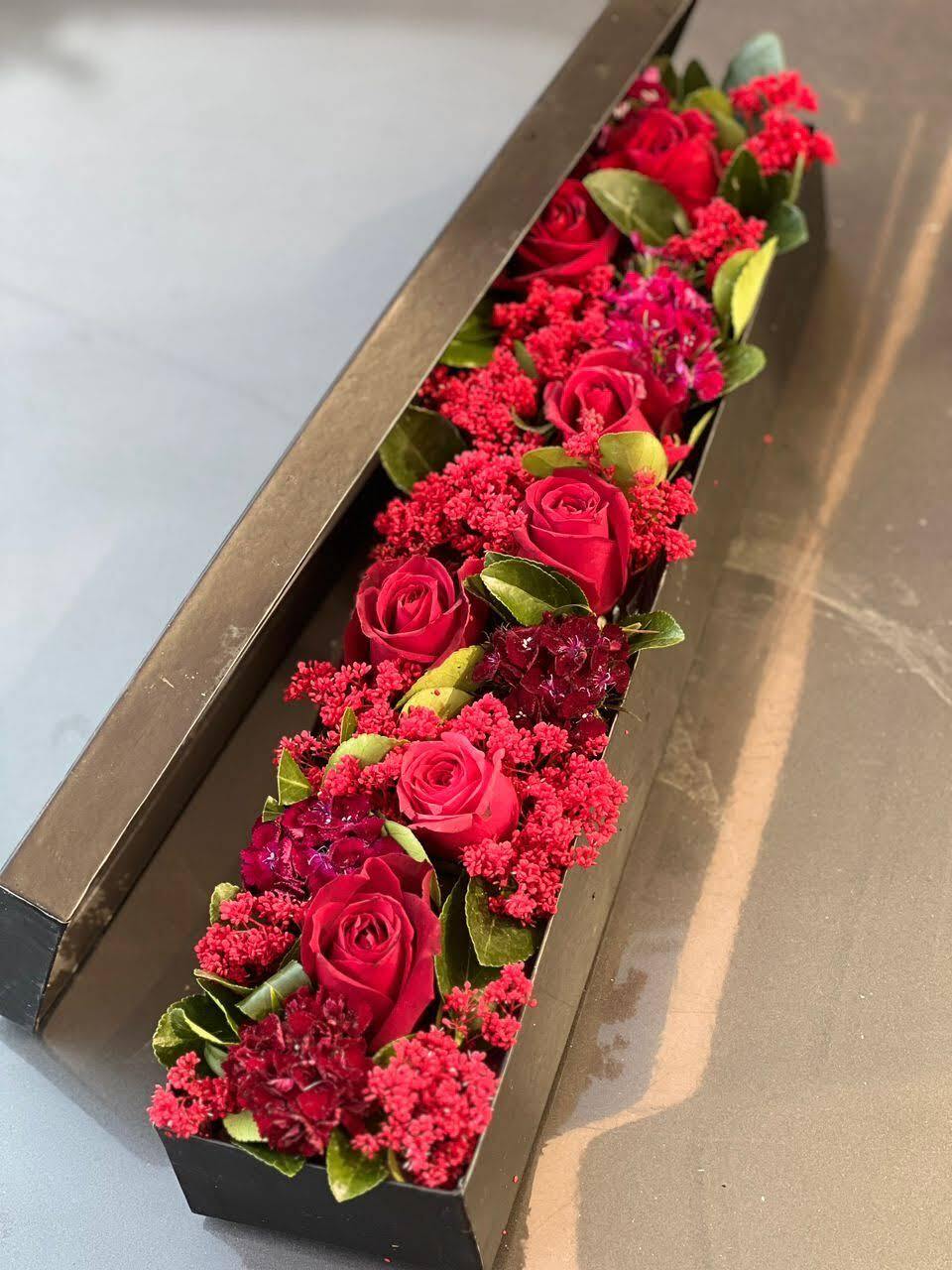 Description گلهای رز که به طرز زیبایی در جعبه چیده شداند همراه گلهای تزیینی که زیبایی جعبه را دو چندان کرده هدیه ای با ارزش برای عزیزان شما 45x20x10:سایز نمونه سفارش قبل از ارسال
